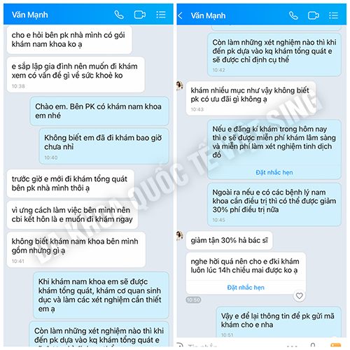 - Anh Thanh Minh (28 tuổi, Hà Nội) chia sẻ: “Mình đã điều trị viêm tuyến tiền liệt khỏi tại phòng khám rồi và vẫn tiếp tục qua khám định kì để đảm bảo sức khoẻ ổn định và có kết quả rất tốt. Trước khi được chữa bệnh khỏi hẳn tại đây mình đã mất tiền oan cho mấy nơi cơ, may gặp phòng khám qua chia sẻ của các anh em trong hội nhóm nên khoẻ mạnh và rất vui mừng.”