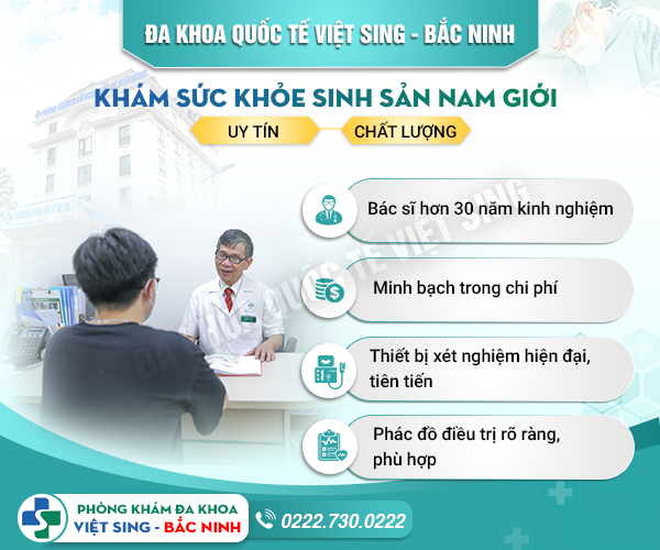 Sức khỏe tốt luôn là tiền đề vững chắc cho một cuộc sống tốt. Nam giới đi khám sức khỏe sinh sản không chỉ để kiểm tra tình trạng bình thường hay bất ổn. Khám sức khỏe sinh sản còn nhằm phát hiện các bệnh lý để có hướng giải quyết kịp thời, tránh gây khó khăn cho sau này. Nếu đang có các vấn đề về sức khỏe sinh sản, liên hệ hotline 086.2345.169 hoặc [Khám bệnh online] để được tư vấn nhanh chóng, cụ thể.