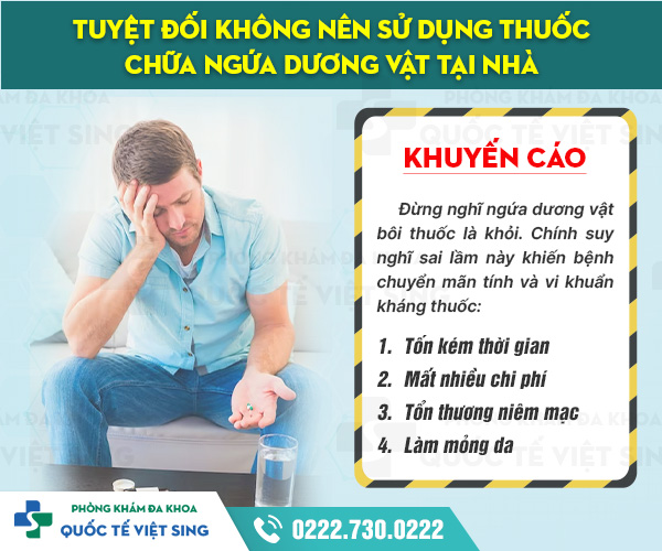 “Đây là một quan điểm vô cùng tai hại. Việc tự mua thuốc bôi, thuốc uống mà không rõ nguyên nhân, không có chỉ định liều lượng tiềm ẩn nhiều nguy hiểm, vô tình tiêu diệt hết các lợi khuẩn và tạo điều kiện thuận lợi hại khuẩn xâm nhập và tấn công. Từ đó, bệnh càng thêm bệnh, ngày càng trở nặng hơn. Đây là lý do vì sao nhiều người dùng thuốc bệnh không khỏi mà càng trầm trọng hơn, tái phát nhiều lần.” Bác sĩ Nguyễn Đình Lý chia sẻ.