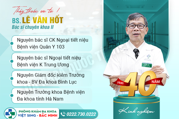 - Bác sĩ Lê Văn Hốt – Bác sĩ Chuyên khoa II Nam học – Ngoại tiết niệu được nhiều bệnh nhân tin tưởng và lựa chọn khám chữa bệnh. Với hơn 40 năm kinh nghiệm công tác và tích cực nghiên cứu, nâng cao trình độ chuyên môn, tay nghề, bác sĩ đã giúp hàng ngàn bệnh nhân thoát khỏi nỗi lo về vấn đề bao quy đầu, mang lại cuộc sống thoải mái cho người bệnh.